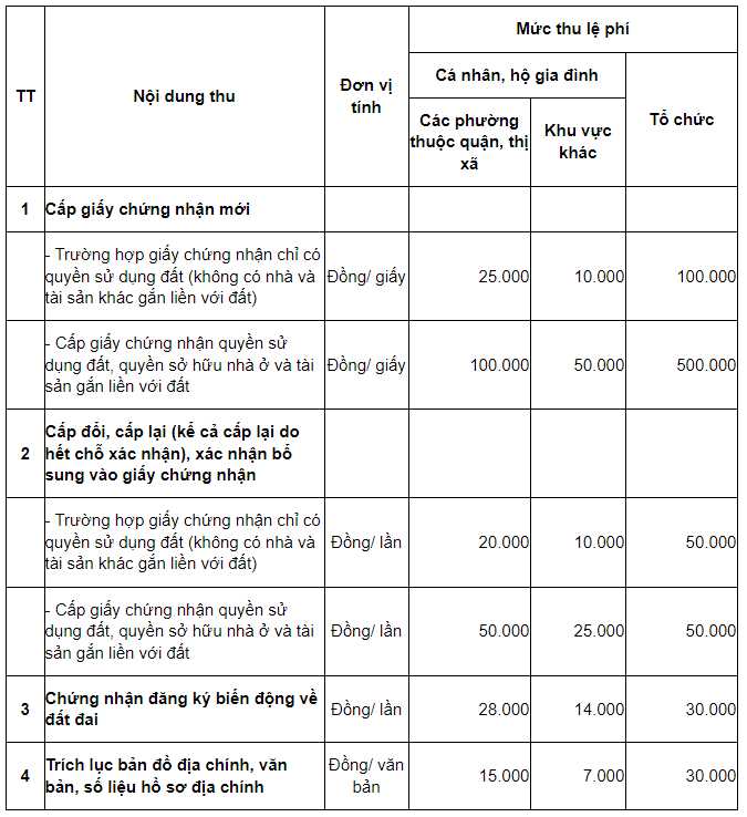 Mức lệ phí cấp sổ đỏ được Hội đồng nhân dân Hà Nội quyết định, thường khoảng 100.000 đến 500.000 đồng tùy loại đất. Ví dụ, đất nông nghiệp có phí thấp hơn so với đất đô thị.